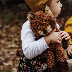 This fox plush toy features a soft, richly textured body with warm auburn red, cream, and chocolate brown tones. Designed with a furry muzzle, fluffy tipped tail, and a soft velour nose, it offers a cozy feel that’s perfect for cuddling and everyday play.